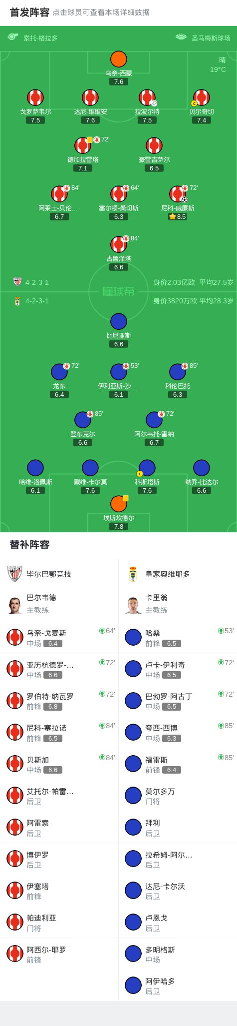 毕尔巴鄂竞技1-0皇家奥维耶多,尼科-威廉斯制胜